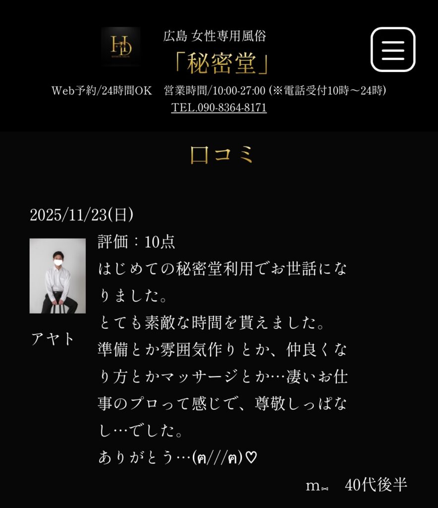 この度、新人セラピストとして秘密堂に加入いたしましたアヤトと申します!皆様にお会いできることを心から楽しみにしています😳